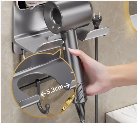 Держатель оснащен вставкой в виде универсального органайзера для мелких бытовых электрических приборов подойдет также для хранения любых мелочей и расчесок, бритвы.