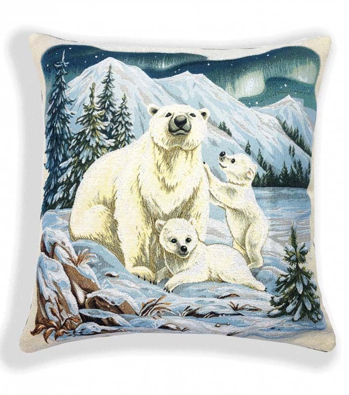Наволочка 45х45 гобелен Зима Белые медведи