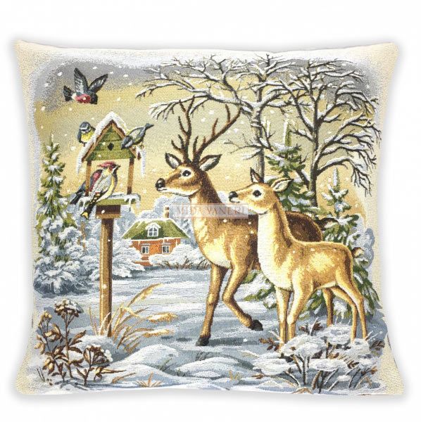 Наволочка 45х45 гобелен Зима Олени