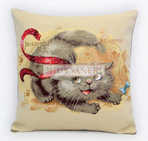 Наволочка 45х45 гобелен Баловни Котенок с ленточкой
