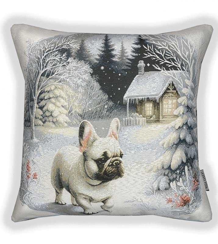 Наволочка 45х45 гобелен Снежный вечер с питомцем