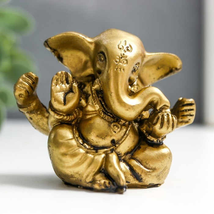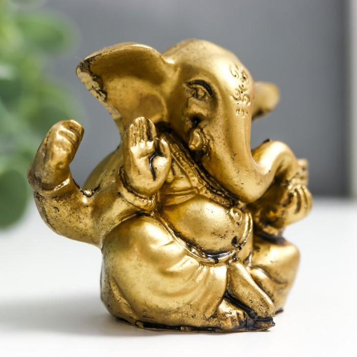 Нэцкэ фигурка «Ганеша», полистоун, под бронзу, 4.8×3×6 см
