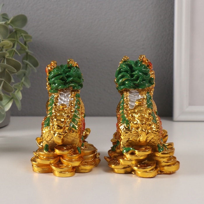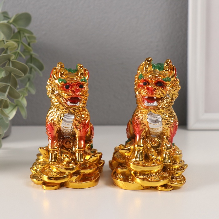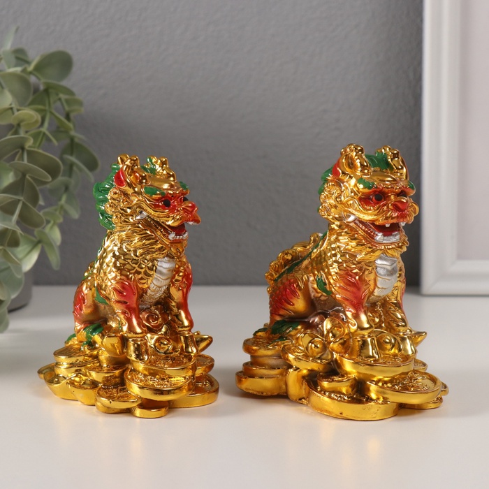 Нэцкэ фигурка «Кирины на монетах», полистоун, золотой, набор 2 шт., 6×9×10.5 см