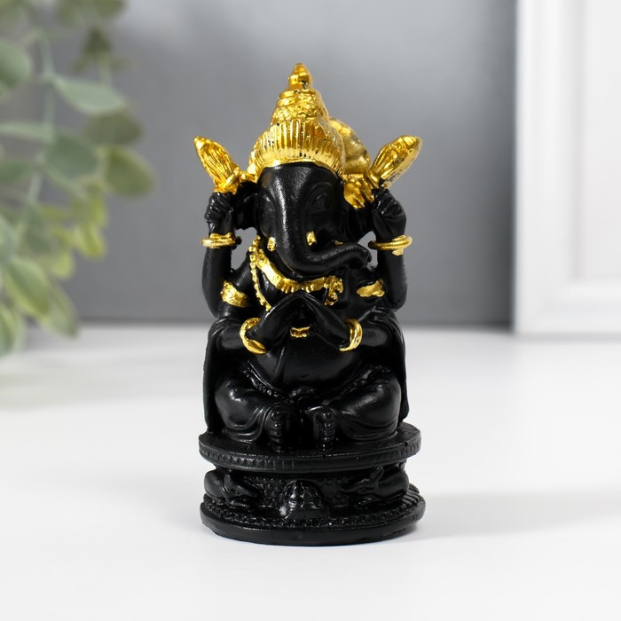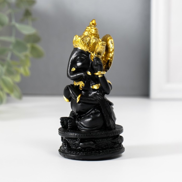 Нэцкэ фигурка полистоун «Ганеша в золотом головном уборе», чёрный, 4.7×4.7×9.7 см
