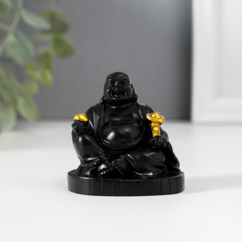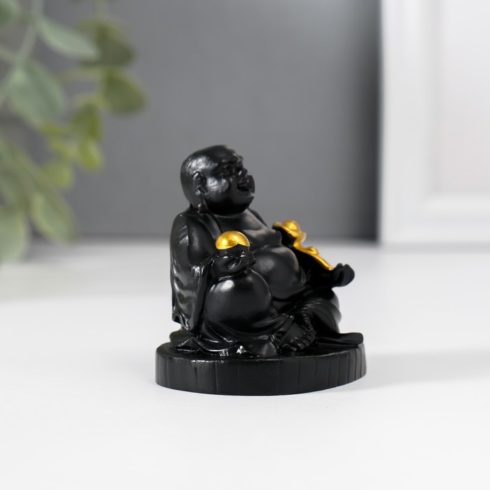 Нэцкэ фигурка полистоун «Хотей с золотым жезлом Жуи», чёрный, 4×5×5.5 см