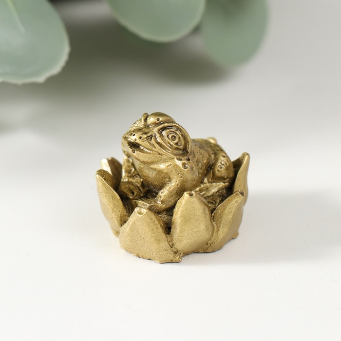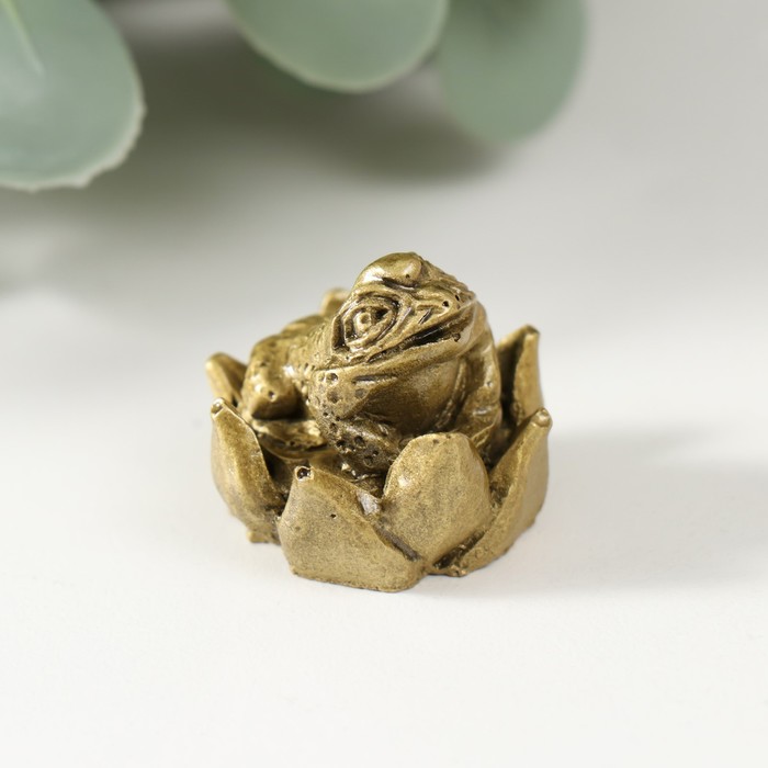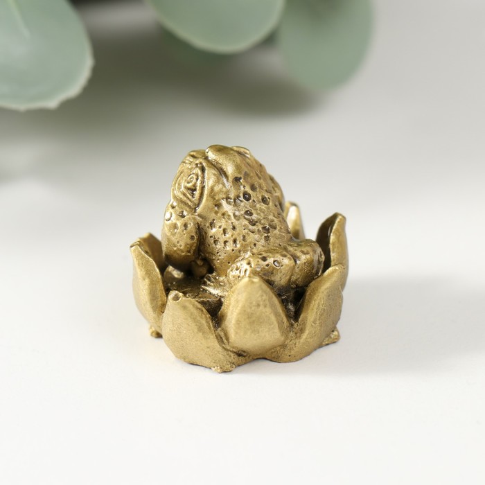 Нэцкэ фигурка полистоун «Маленькая жаба в лотосе», под бронзу, 2.5×2.5×2.5 см