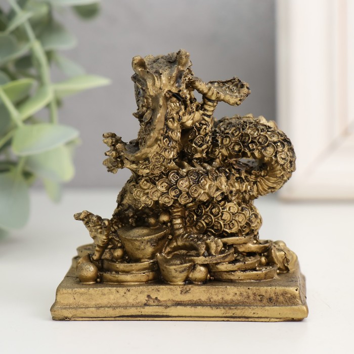 Нэцкэ фигурка полистоун под бронзу «Дракон. Денежная активация», 4.7×7×7.5 см