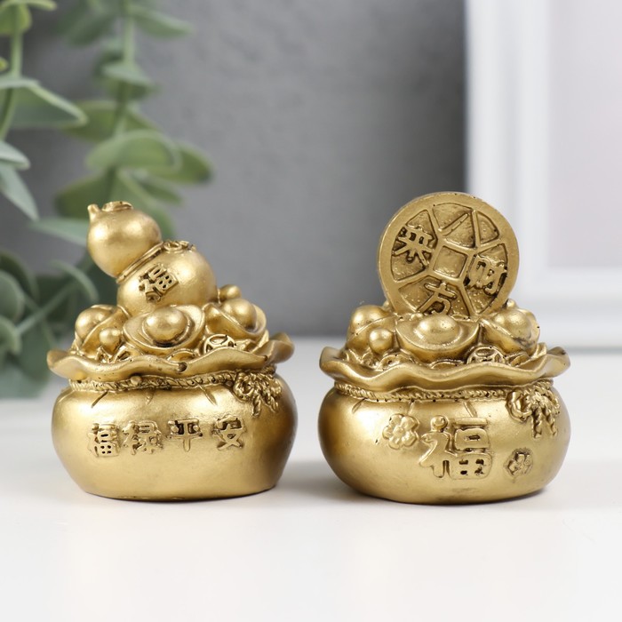 Нэцкэ фигурка полистоун под бронзу «Мешки со слитками золото - На богатство», набор 2 шт., 4.4×4.4×5 см