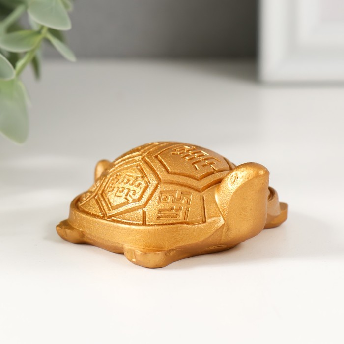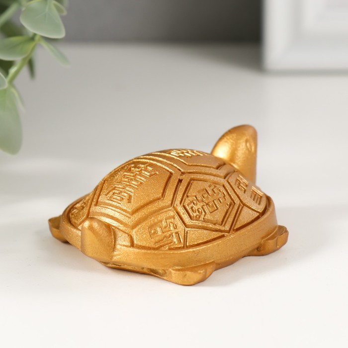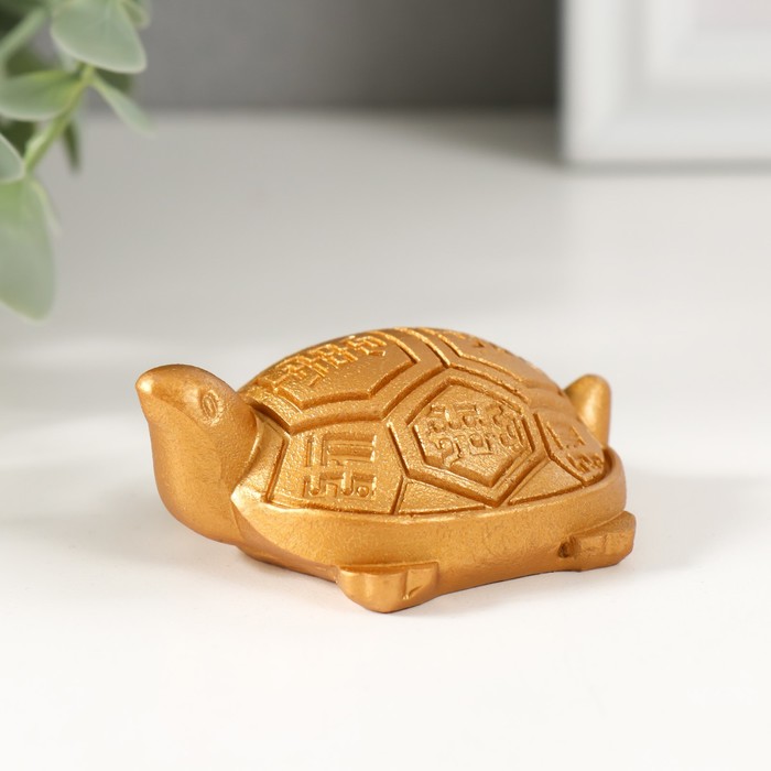 Нэцкэ фигурка полистоун под золото «Черепаха с символами на панцире», 6.4×5.5×2.2 см
