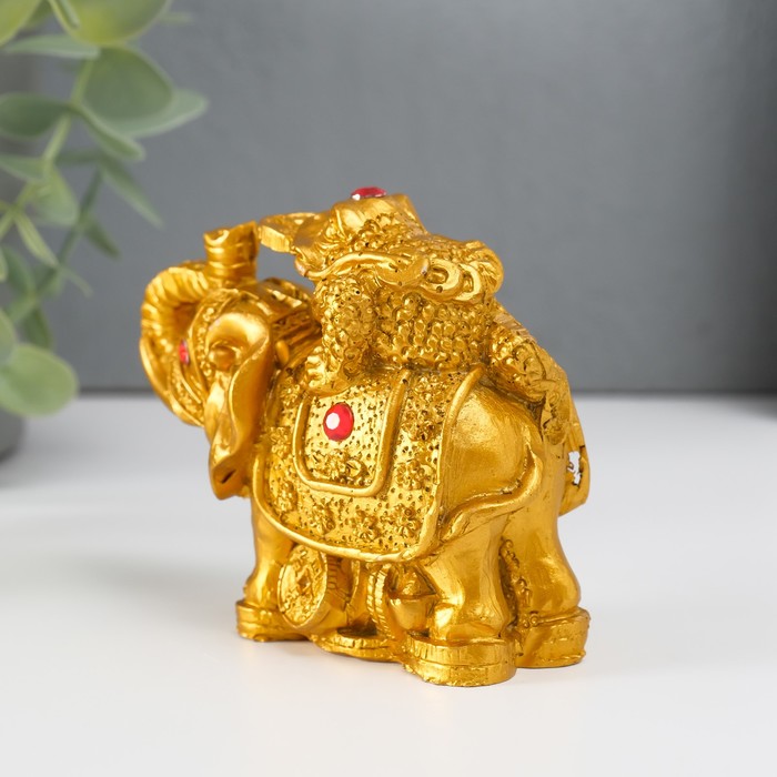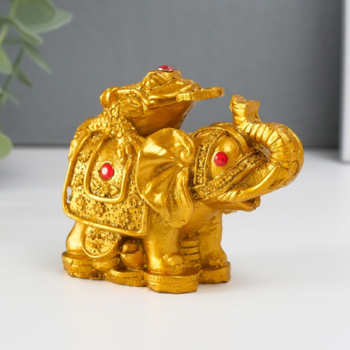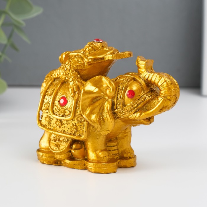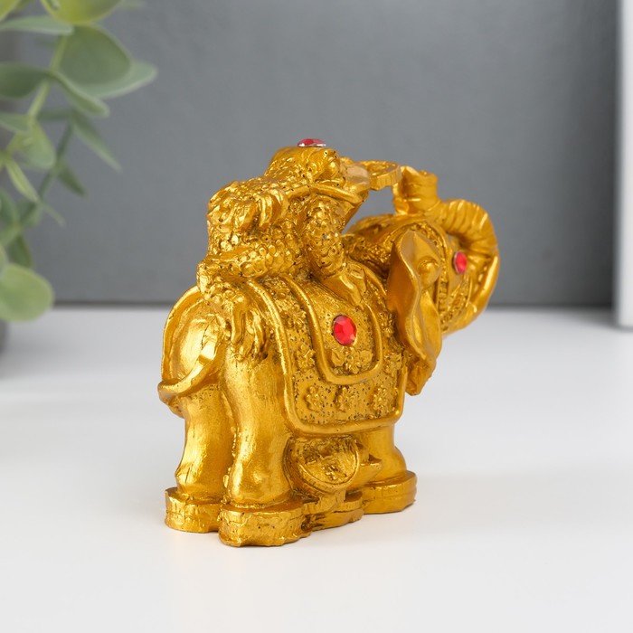Нэцкэ фигурка «Слон с денежной жабой на спине», полистоун, под бронзу, 7.5×9.3×5.2 см