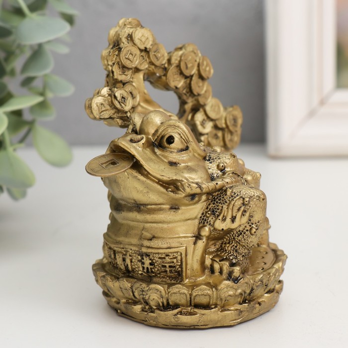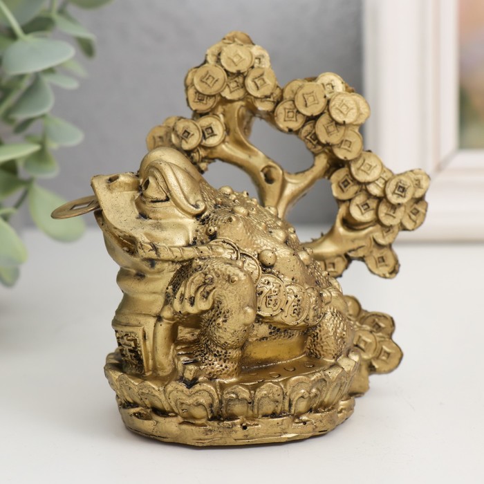 Нэцкэ фигурка «Жаба с денежным деревом», полистоун, под бронзу, 10×9.5×7.2 см
