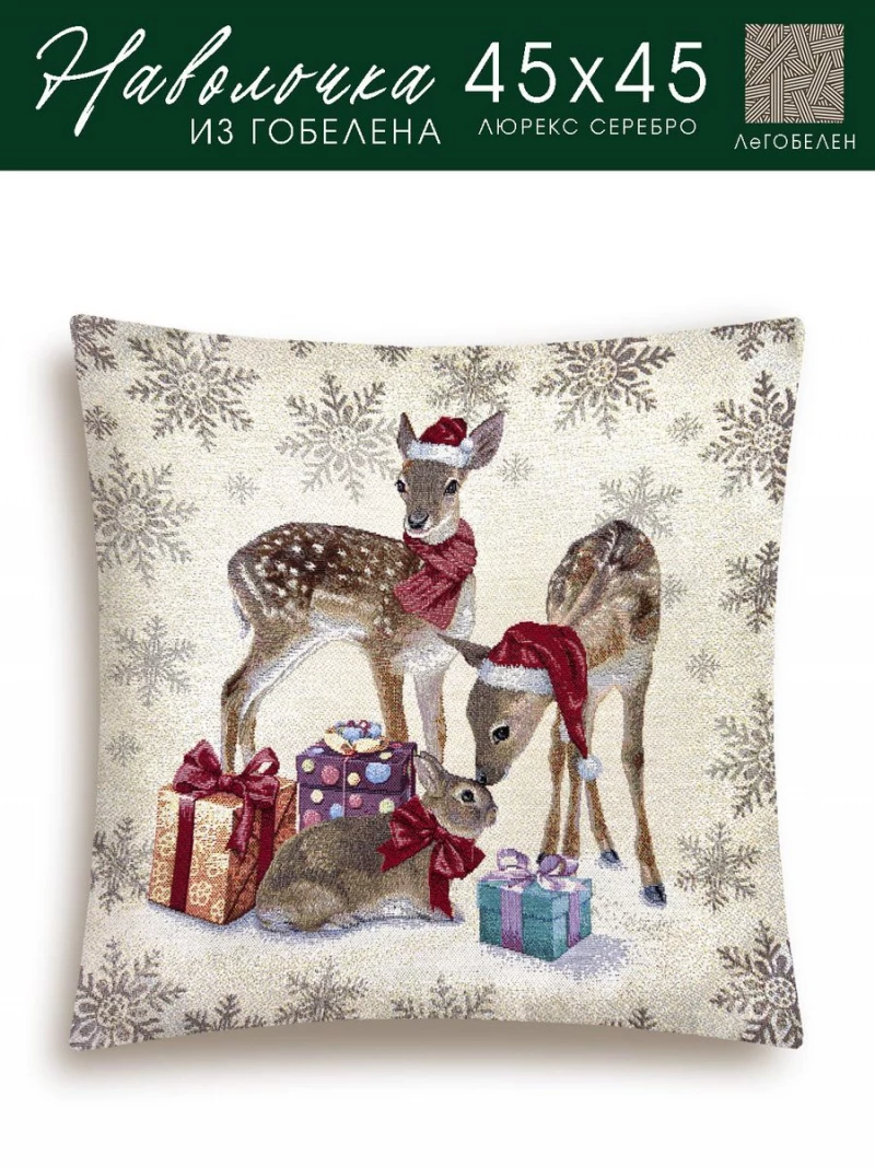 Новогодний прованс Олени и заяц Наволочка 45х45 см 2109373 серебро
