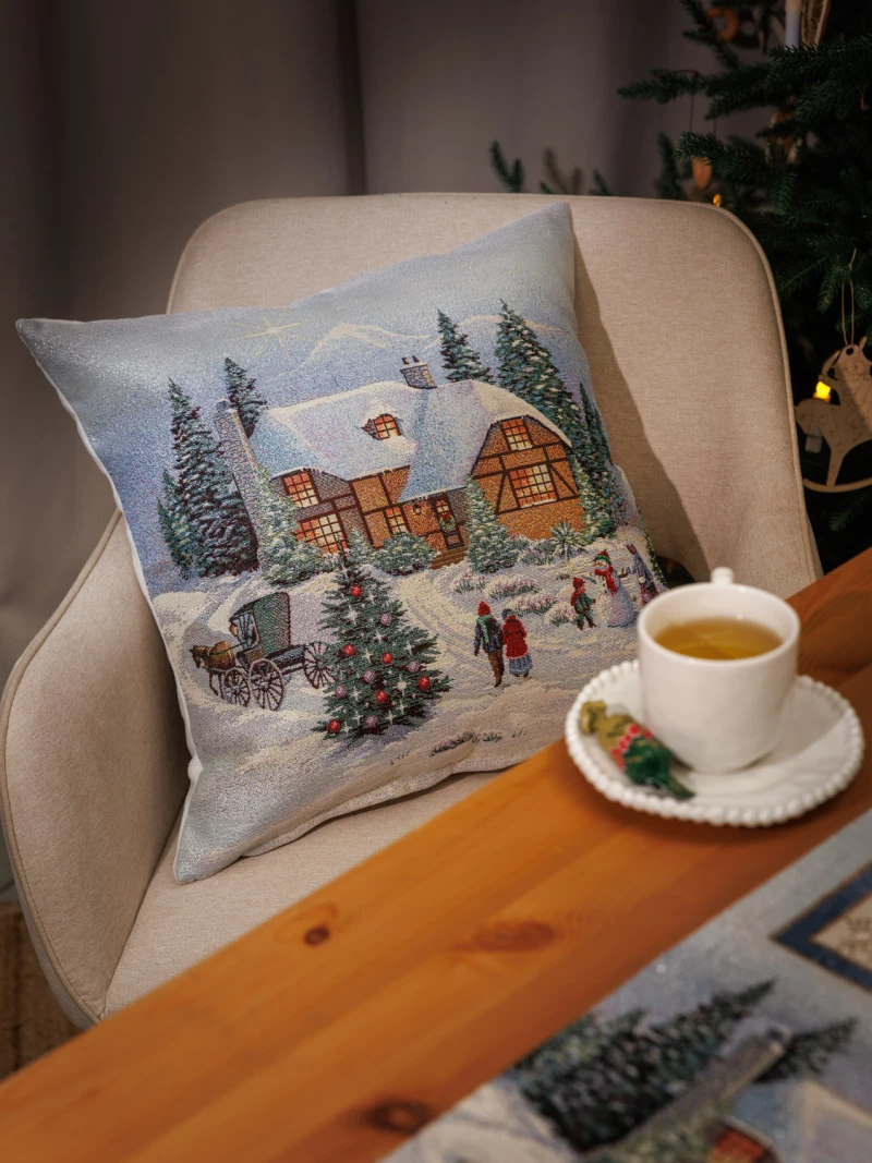 Новогодний вечер голубой фон Карета Наволочка 45х45 см 2100595