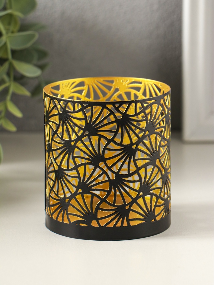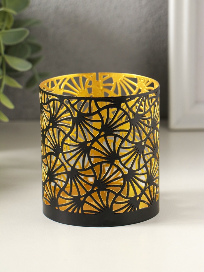 Металлический подсвечник «Цилиндр цветы», 7.5×7.5×8 см, чёрный с золотом