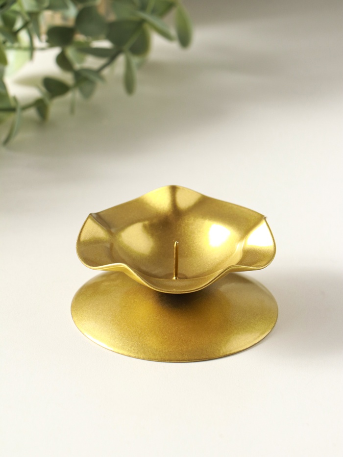Просто установите в него вашу любимую свечу. Тёплое пламя, отражаясь в золотистой поверхности, заиграет мягкими бликами, наполняя комнату живым, умиротворяющим светом. Этот подсвечник — тот самый акцент, которого не хватало для завершения образа вашего дома.