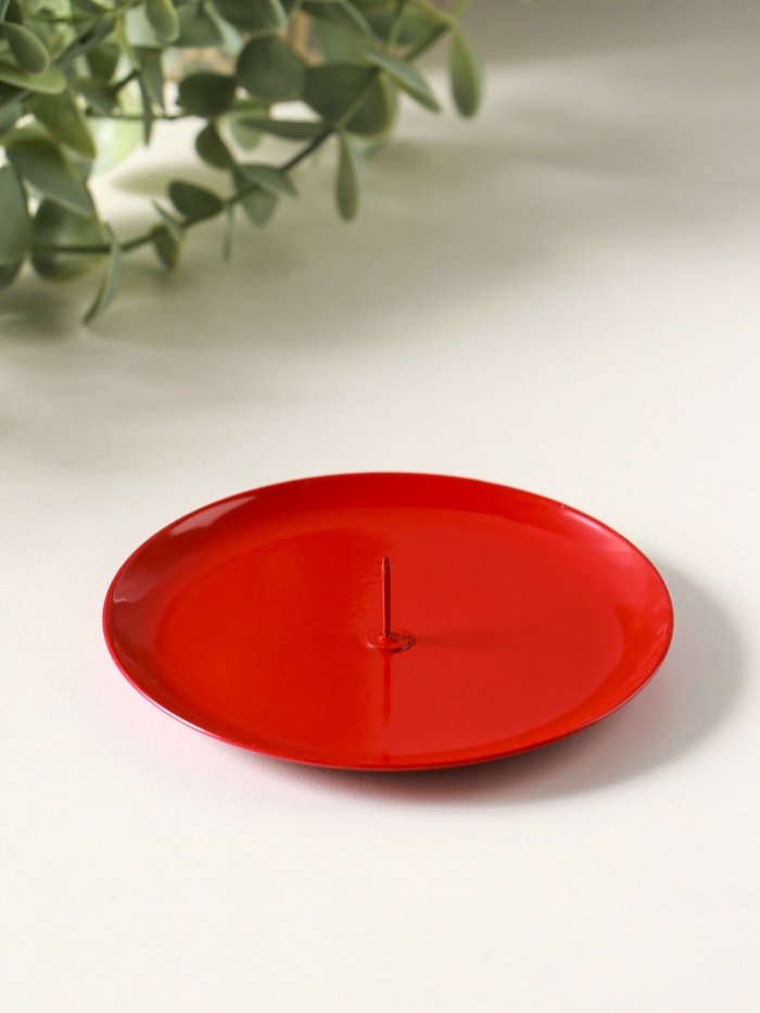 Этот красный металлический подсвечник — лаконичный акцент для вашего пространства. Его плоская чашевидная форма создаёт устойчивую платформу для свечи, превращая простое пламя в стильный элемент декора. Универсальный дизайн гармонично впишется в интерьер гостиной, добавит уюта спальне или станет изящным украшением праздничного стола.