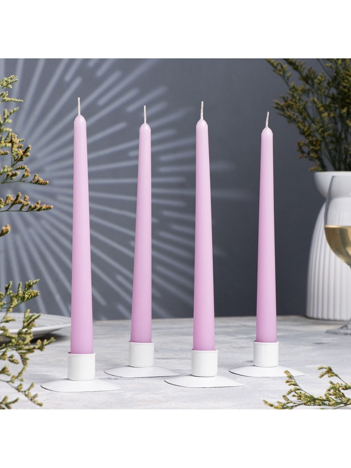 Набор свечей античных, 2.3×24.5 см, 5 ч, 55 г, 4 шт., сиреневая