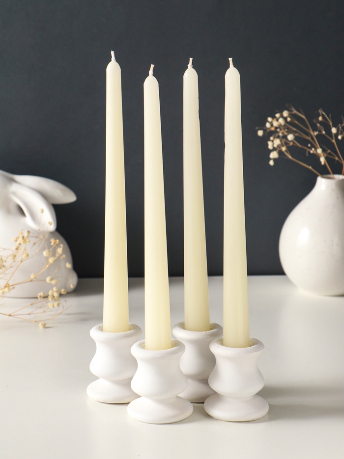 Этот набор из четырёх высоких конических свечей — готовое решение для создания торжественной атмосферы. Их классическая форма и нейтральный оттенок слоновой кости гармонично дополнят свадебный декор или станут элегантным акцентом на любом праздничном столе.
