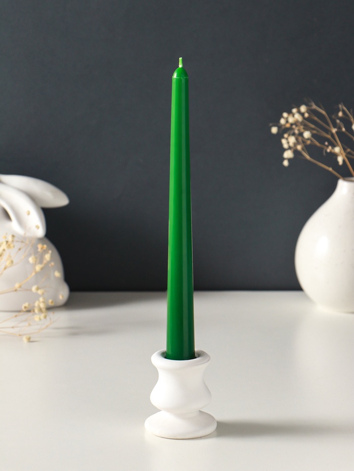 Глубокий зелёный цвет свечей добавляет интерьеру стильный акцент и ощущение гармонии с природой. Их пламя дарит мягкий, живой свет, превращая обычный вечер в небольшое событие. Такой набор — это простой способ расставить световые акценты в пространстве и подчеркнуть торжественность момента, будь то новогодний ужин или романтическая атмосфера.