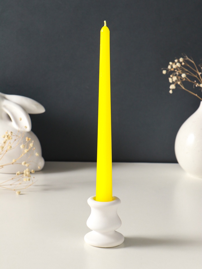 Набор из четырёх высоких жёлтых свечей создаёт мгновенное праздничное настроение. Их классическая коническая форма и тёплый однородный цвет напоминают о пламени камина и уюте долгих вечеров. Каждая свеча горит до пяти часов — этого достаточно для продолжительного ужина или спокойного чтения.