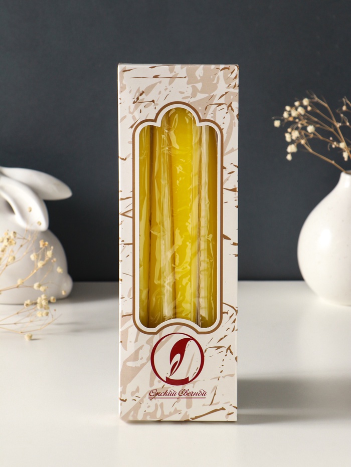 * В наборе четыре одинаковые свечи универсального жёлтого оттенка.