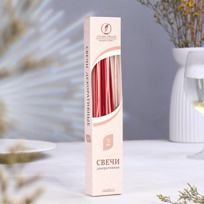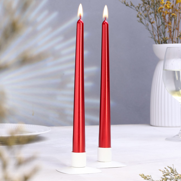 Набор свечей античных, 2.3×24.5 см, 5 ч, 55 г, 2 шт., бордо металлик