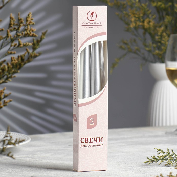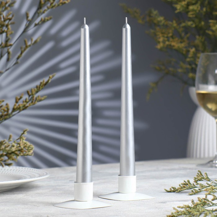 Набор свечей античных, 2.3×24.5 см, 5 ч, 55 г, 2 шт., серебряный