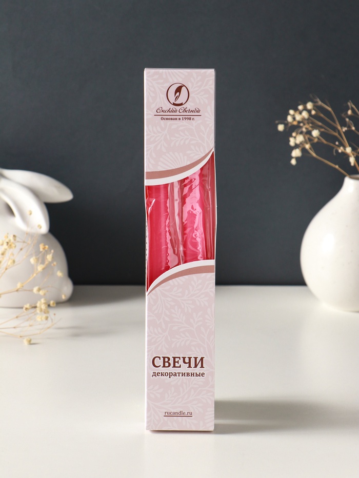 Набор свечей античных, 2.3×24.5 см, 5 ч, 55 г, 2 шт., тёмно-розовый