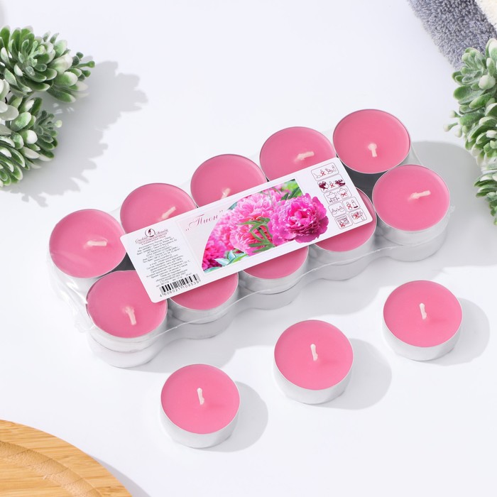 Набор свечей ароматических чайных «Пион», 3.8×1.6 см, 3.5 ч, 12 г, 20 шт.