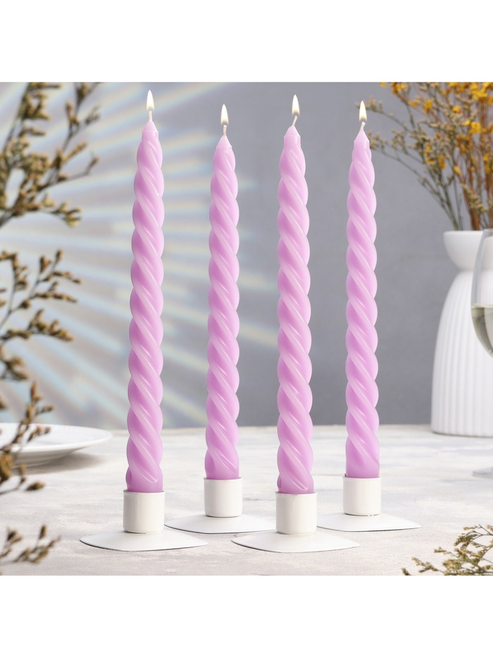 Набор свечей витых, 2.3×24.5 см, 5 ч, 50 г, 4 шт., сиреневый