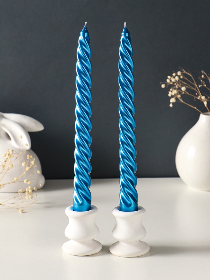 Набор свечей витых, 2.3×24.5 см, 5 ч, 50 г, 2 шт., синий металлик