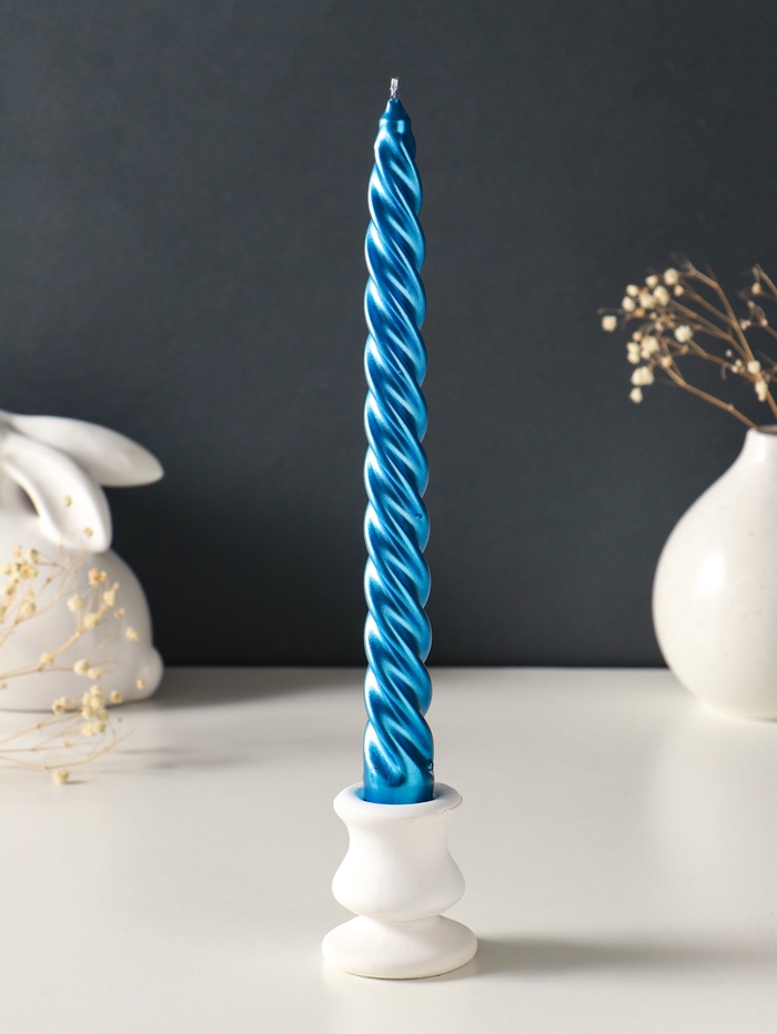 Эти высокие витые свечи создают атмосферу торжества и уюта без лишних слов. Их динамичная форма и глубокий металлический оттенок синего придают интерьеру стильный акцент, идеально подходящий для праздничного стола, романтического вечера или создания новогоднего настроения. Каждая свеча горит до пяти часов, наполняя пространство тёплым, живым светом.