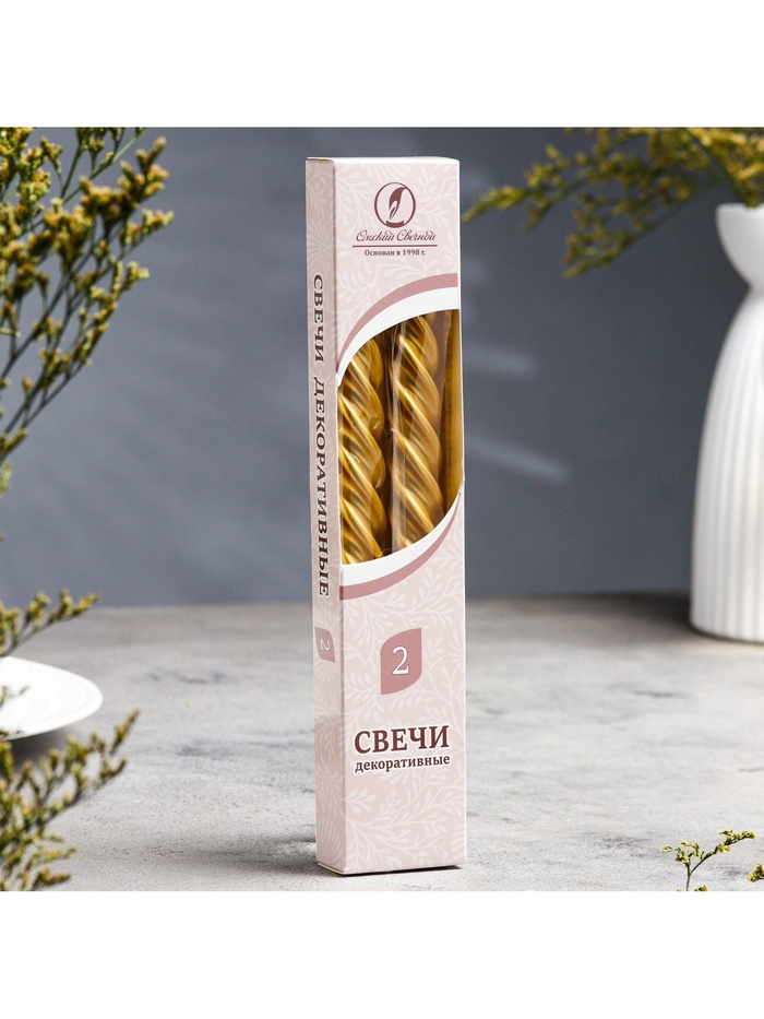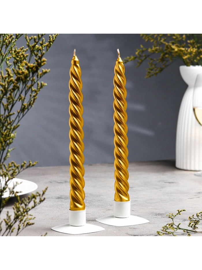 Набор свечей витых, 2.3×24.5 см, 5 ч, 50 г, 2 шт., золотой