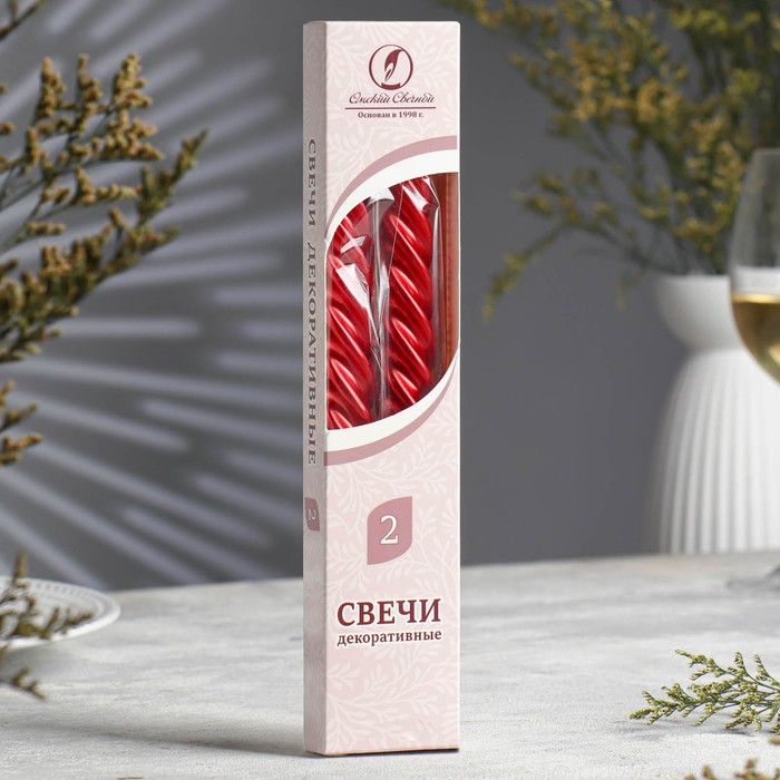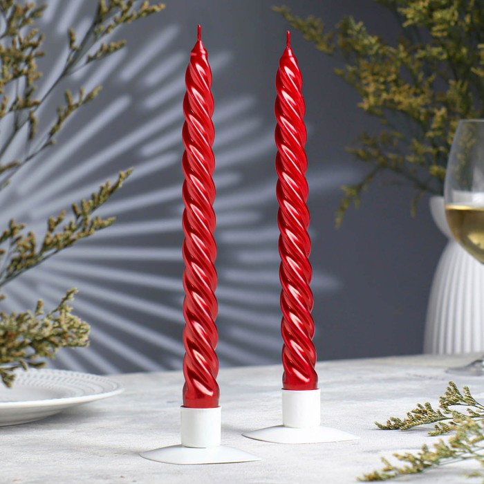Набор свечей витых, 2.3×24.5 см, 5 ч, 50 г, 2 штуки, красный металлик