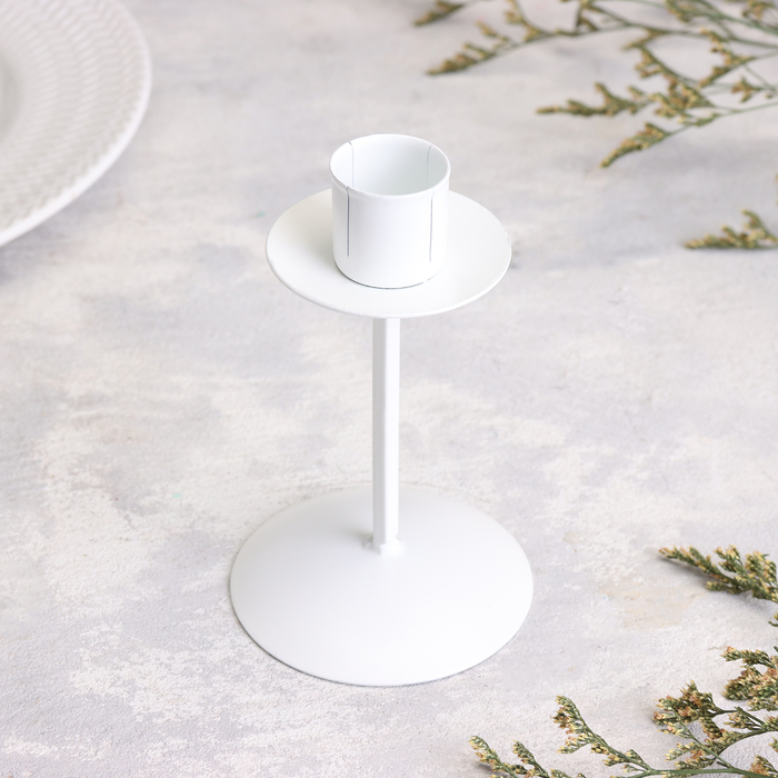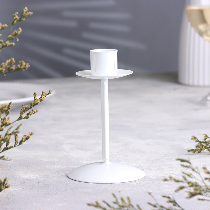 Подсвечник на 1 свечу «Боб», металл, 7.4×12 см, белый