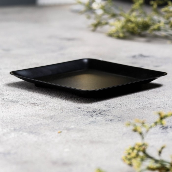 Подсвечник плоский «Тарелка квадро», металл, 10×10×1.1 см, чёрный