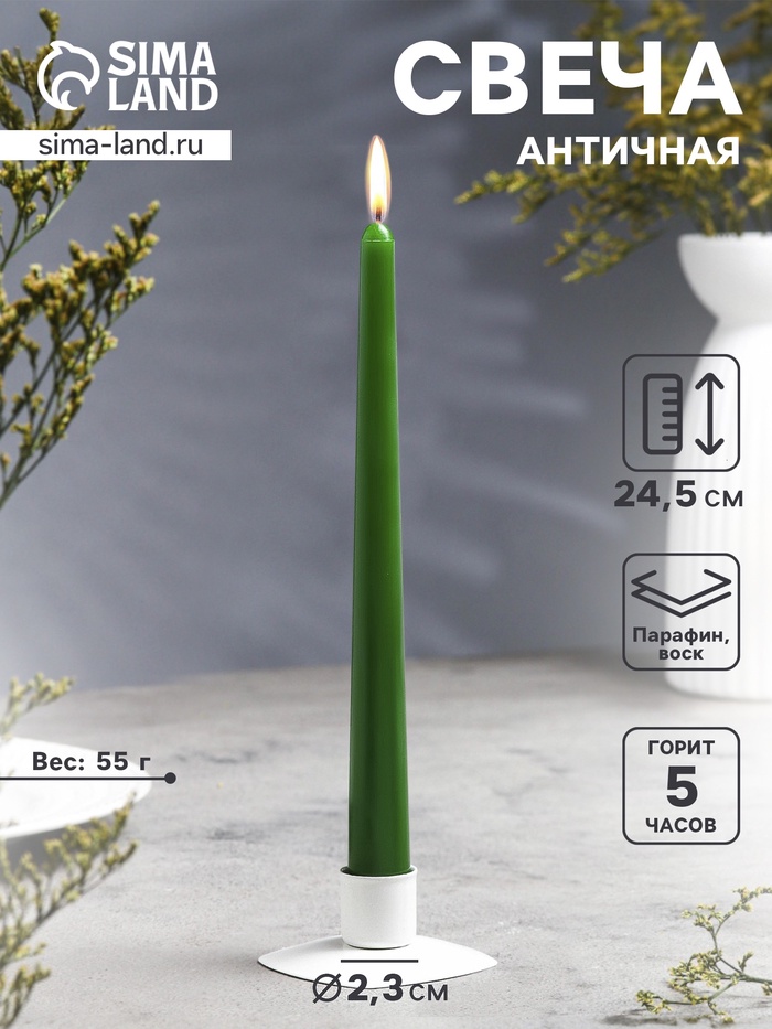 Свеча античная, 2.3×24.5 см, 5 ч, 55 г, тёмно-зелёная