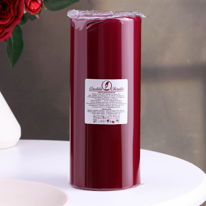 Свеча - цилиндр, 8×20 см, 90 ч, 795 г, бордовая