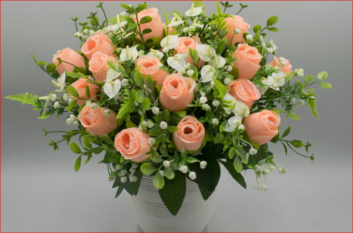 Букет роз в полуроспуске + два вида белых мелких цветочков веточки и разных веточек 50 см. в высоту (19-20 бутонов). 500306448/5