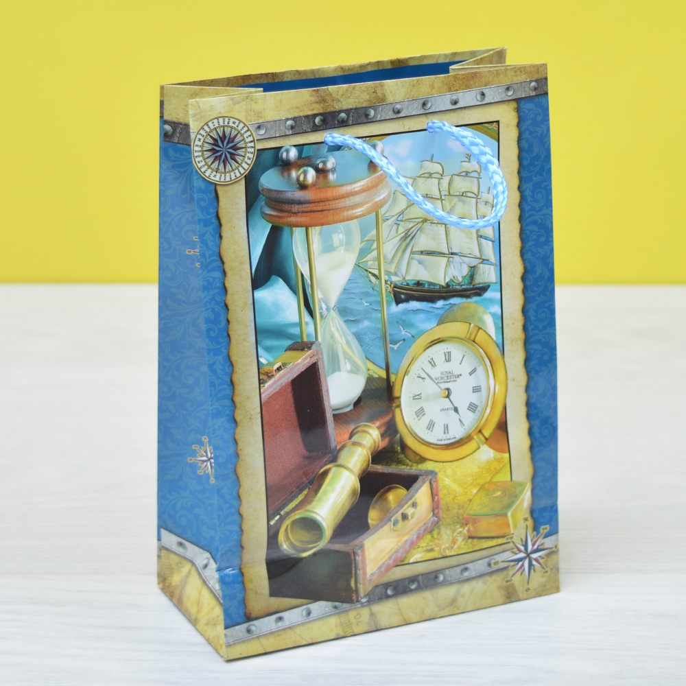 Пакет бумажный 14*20*7см с ручками глянцевый "Мужской" микс
