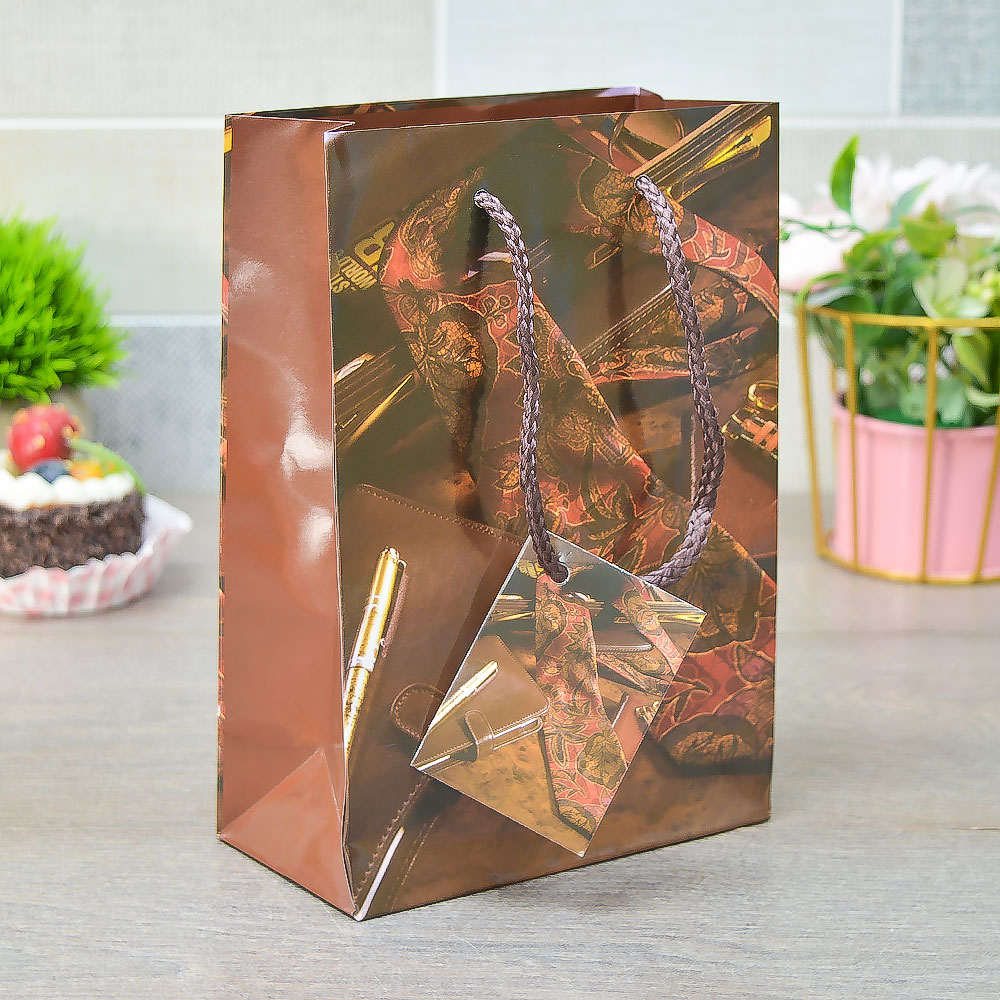 Пакет бумажный 14*20*7см с ручками "Мужской" микс