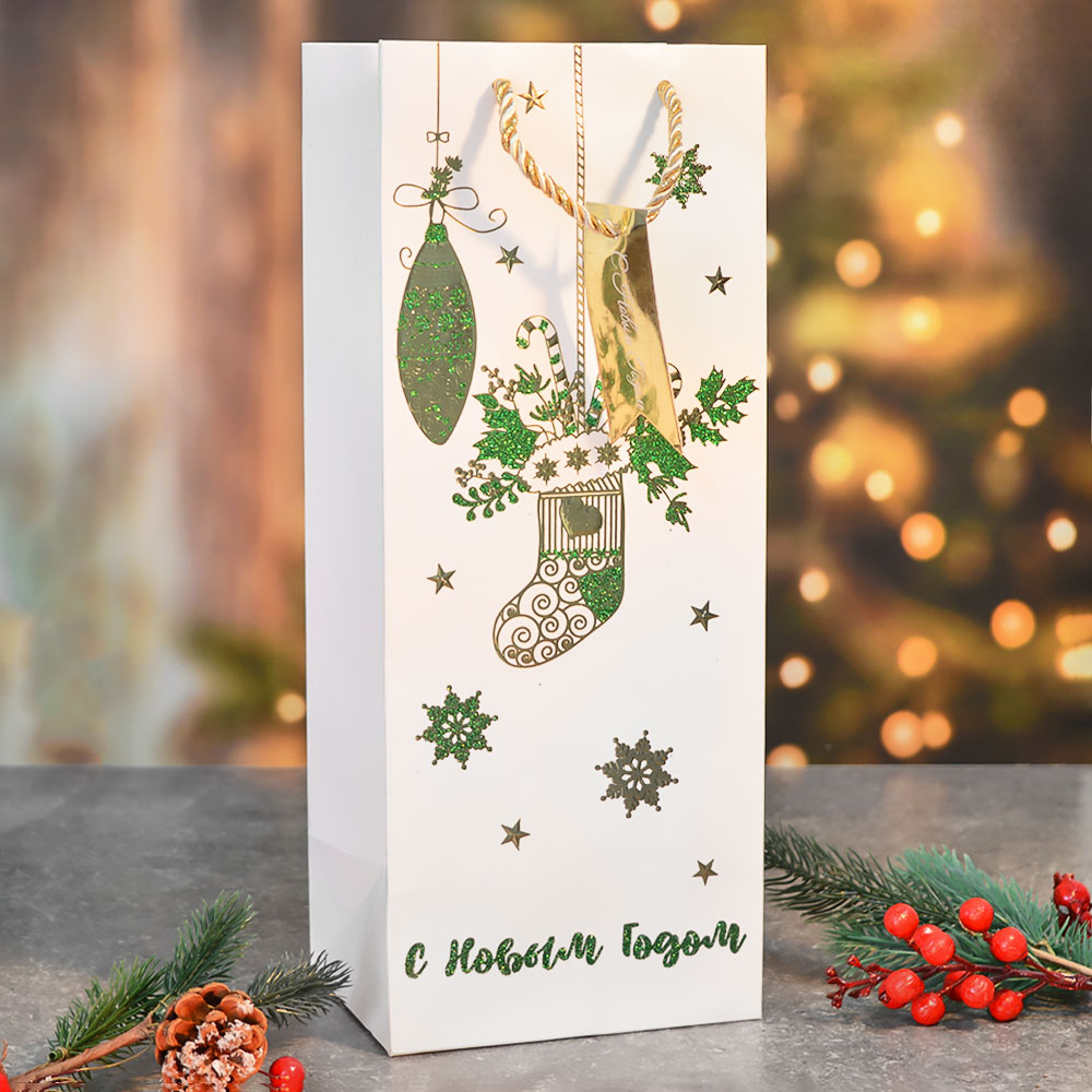 Пакет бумажный 14*35*11см с ручками "Новый год" (микс 434)