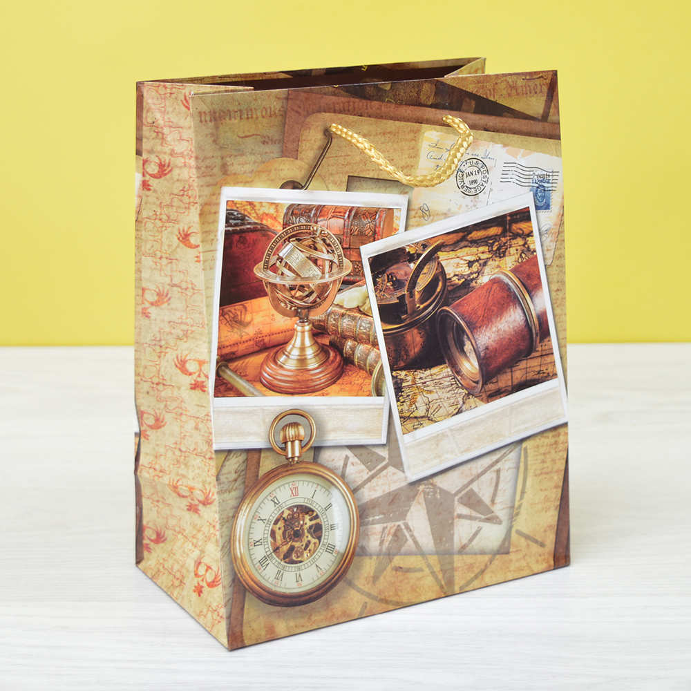 Пакет бумажный 18*23*10см с ручками глянцевый "Мужской" микс