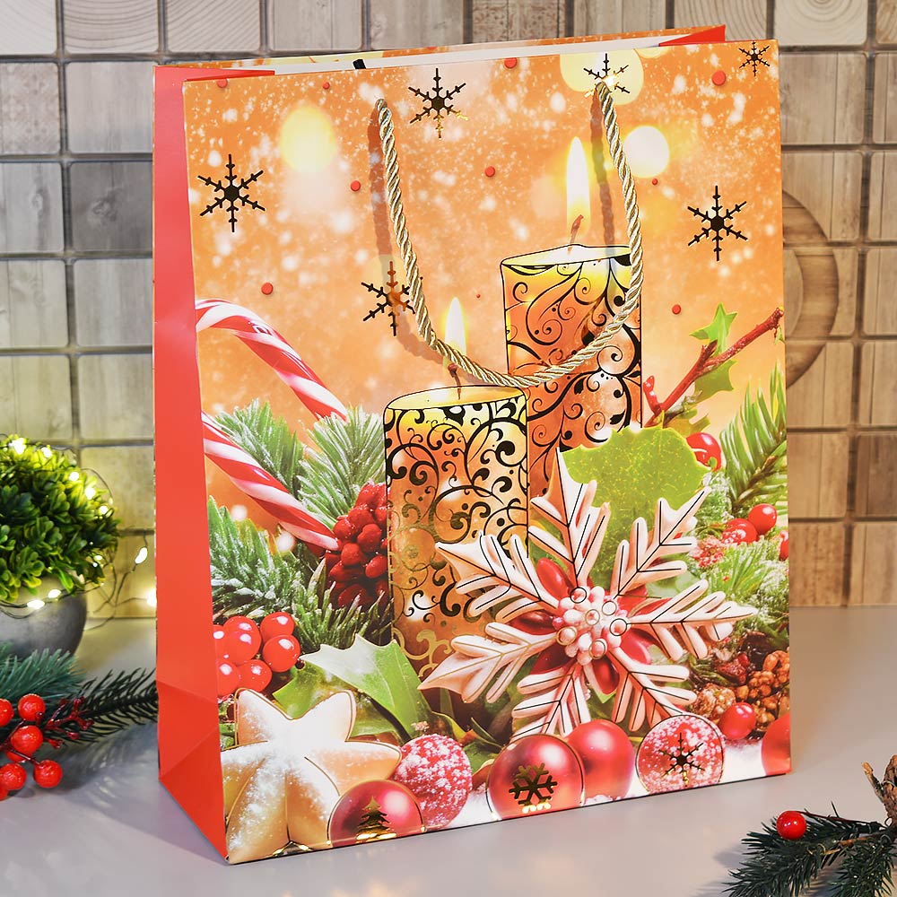 Пакет бумажный 26*32*10см с ручками "Новый год" (микс 420)