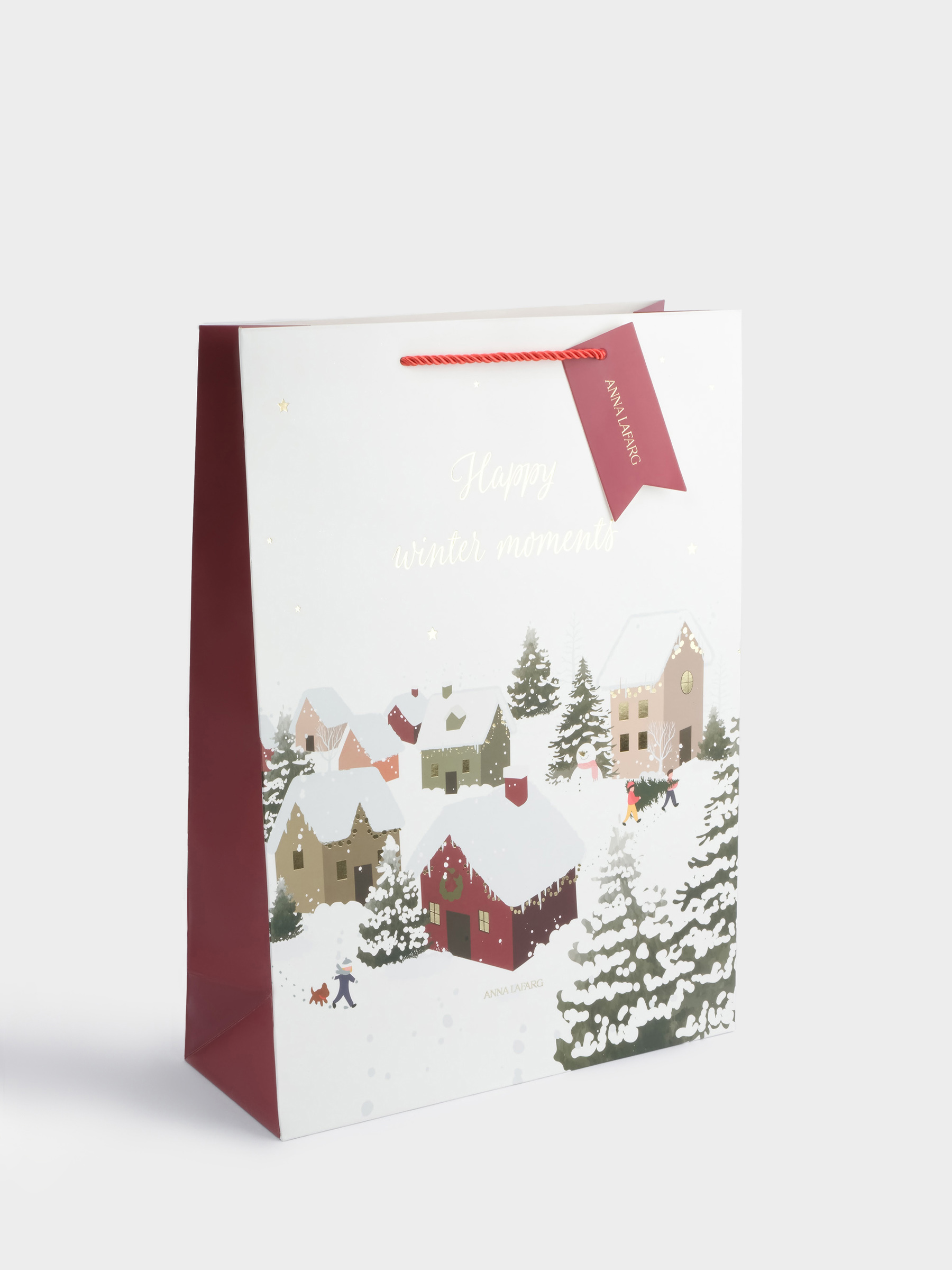 Пакет подарочный, 30х42 см, бумага, бело-красный, Снежный город, Town