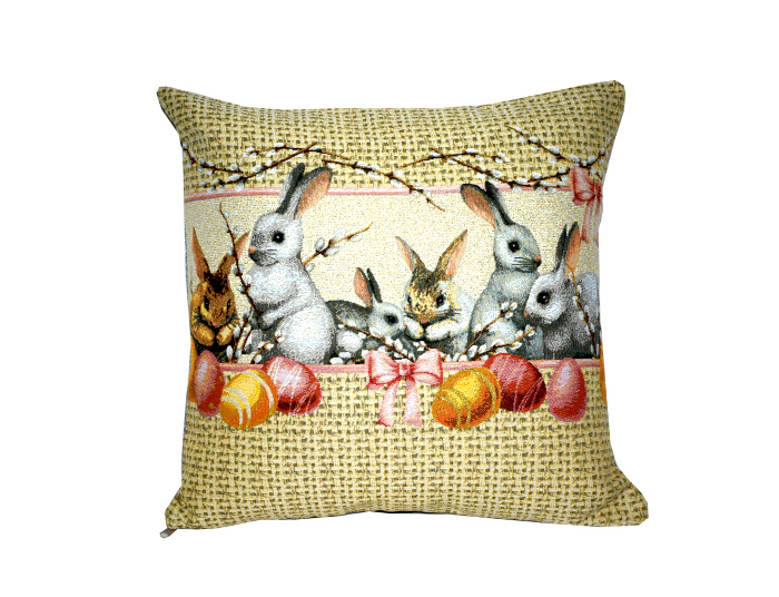 Пасхальные зайчики Верба - гобеленовая наволочка