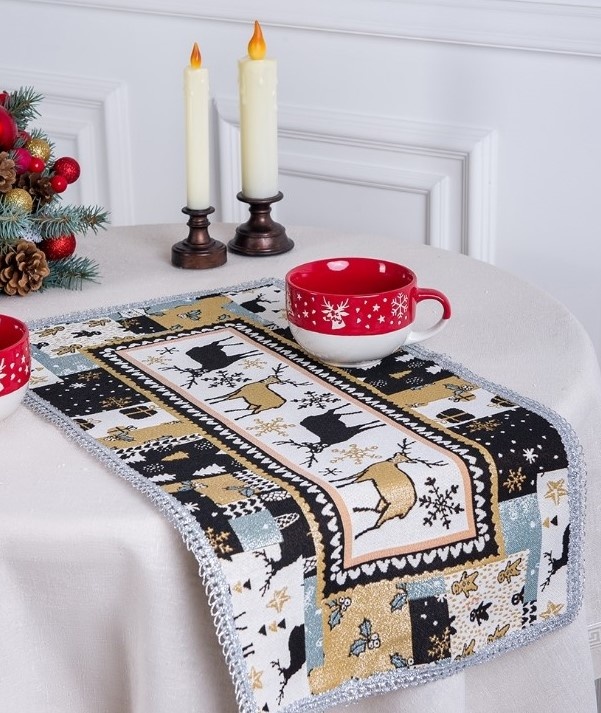 Наша фабрика представляет новогодние гобеленовые салфетки выполненные в стиле техники пэчворк. Пэчворк - это особая техника, при которой изготавливаются цельные изделия из кусочков ткани с отличающимся рисунком. В процессе работы создаётся полотно с новым цветовым решением, узором и фактурой. Это очень интересно и необычно! Вам точно понравится!