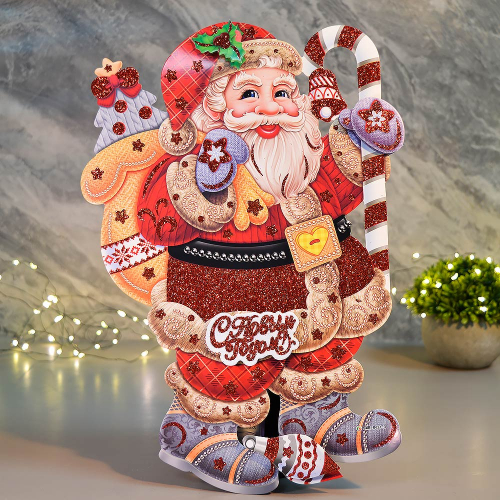 Плакат новогодний "Дед Мороз на оленях" 45*25см