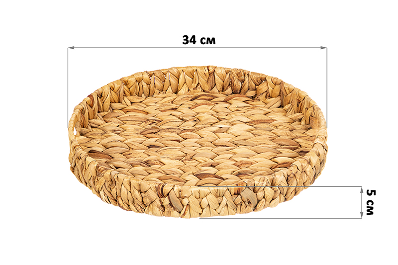 Круглый плетеный поднос 34х34х5 см имеет прочную конструкцию и ручки для переноски. Подойдет для сервировки к столу закусок, горячих блюд и другой еды. Поможет в эстетичной подаче чая, вина, завтрака в постель, организации чаепитий и чайных церемоний на веранде. Органайзер имеет высокие бортики 5 см. Удобно использовать: тарелки и другая посуда не будут соскальзывать при переноске. Красивый поднос можно использовать как декор на кухне, интерьерную подставку для журнального столика в гостиной, эстетичного хранения вещей. Декоративный сервировочный поднос станет удобным дополнением дома и настоящим украшением кухонного интерьера!