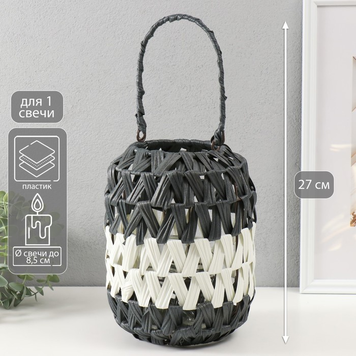 Подсвечник - фонарь на 1 свечу «Зигзаг», пластик, чёрно-белый, 11×20×27 см